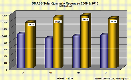 Med den brasklappen i minnet kan man konstatera att den Europeiska halvledarmarknaden, som DMASS mäter den, ökade med 53,6 procent i fjol till 5,9 miljarder euro. Det är den högsta siffran som DMASS registrerat sedan organisationen skapades för 20 år sedan.