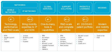 Här är Ericssons värsta konkurrenter. På investerarkonferensen förra veckan listade Ericssonchefen Hans Vestberg de svåraste konkurrenterna på marknaden.Ärkekonkurrenterna Nokia och Alcatel-Lucent finns med på listan. Nokias nätbolag NSN är konkurrent på tre marknader och Alcatel-Lucent på fyra.