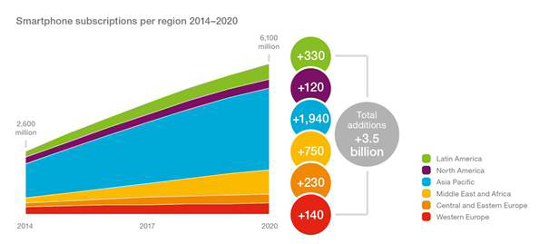 Om fem år kommer 70 procent av jordens befolkning att ha en egen smartmobil och 90 procent har täckning från mobila bredbandsnät. Prognoserna kommer från telekomjätten Ericsson som publicerat en uppdaterad version av Ericsson Mobility Report.