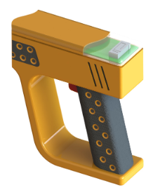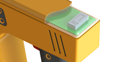 | Så här kan en så kallad PIFA-antenn (Planar Inverted F-Antenna) placeras i ett verktyg. PIFA är en vanlig topologi i denna typ av tillämpningar. Genom att skära ut slitsar i konstruktionen kan den anpassas till flera olika frekvenser. |