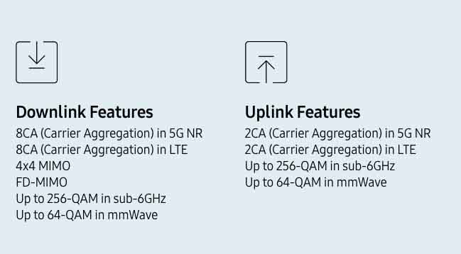 Kretsen har testats i ett av Samsungs egna 5G-nät men den klarar också äldre mobilstandarder inklusive 2G-standraderna GSM och CDMA, 3G-standarderna WCDMA, TD-SCDMA och HSPA liksom 4G, det vill säga LTE.