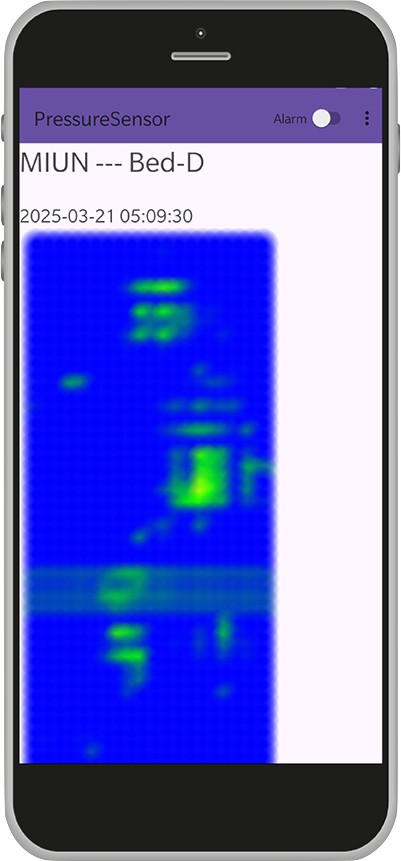 Vårdpersonalen kan följa tryckfördelningen i realtid i en app, och få larm om vid risk.