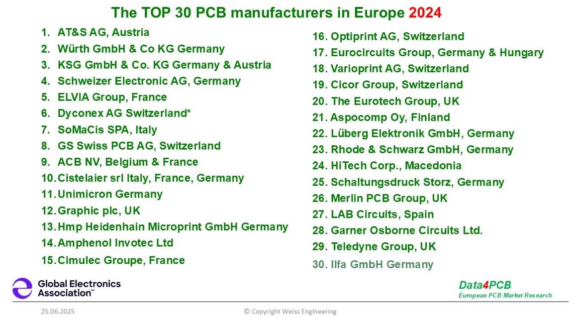 Den sista december 2024 fanns det fortfarande 178 företag med 194 mönsterkortsfabriker i Europa. Sedan dess har fyra fabriker lagts ned, konstaterar det tyska analyshuset Data4PCB.