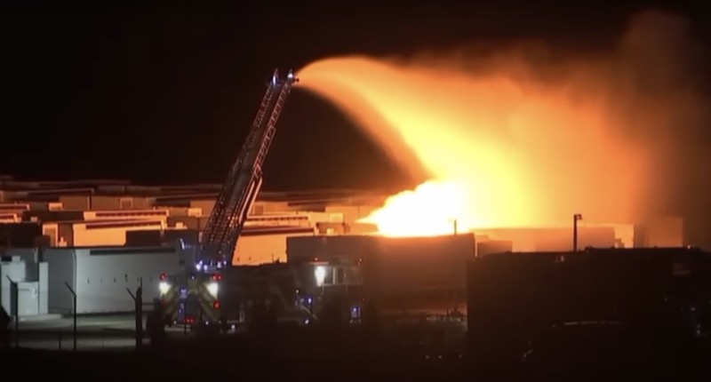 | Efter att det ena Megapacket fattat eld var det andra öde beseglat. Brandstyrkan kylde övriga 112 Megapack. |