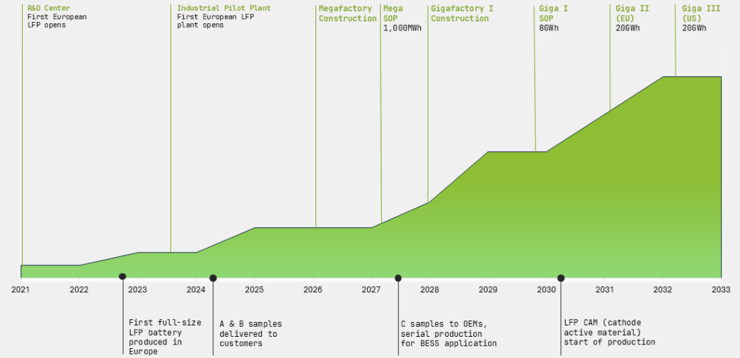 År 2023 fanns en pilotfabrik för LFP-celler på plats. Nu känner Elevenes sig redo för sin första volymfabrik. De första leveranserna väntas redan nästa år. Cellen beskrivs som en högpresterande prismatisk LFP-cell.