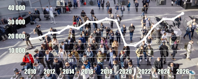 Titta på kurvan – det ser onekligen ut som om den stora inbyggnadsmässan i Nürnberg börjat trappa upp besökarantalet igen, efter pandemin. Vi var 36 000 personer i år – 13 procent fler än i fjol.